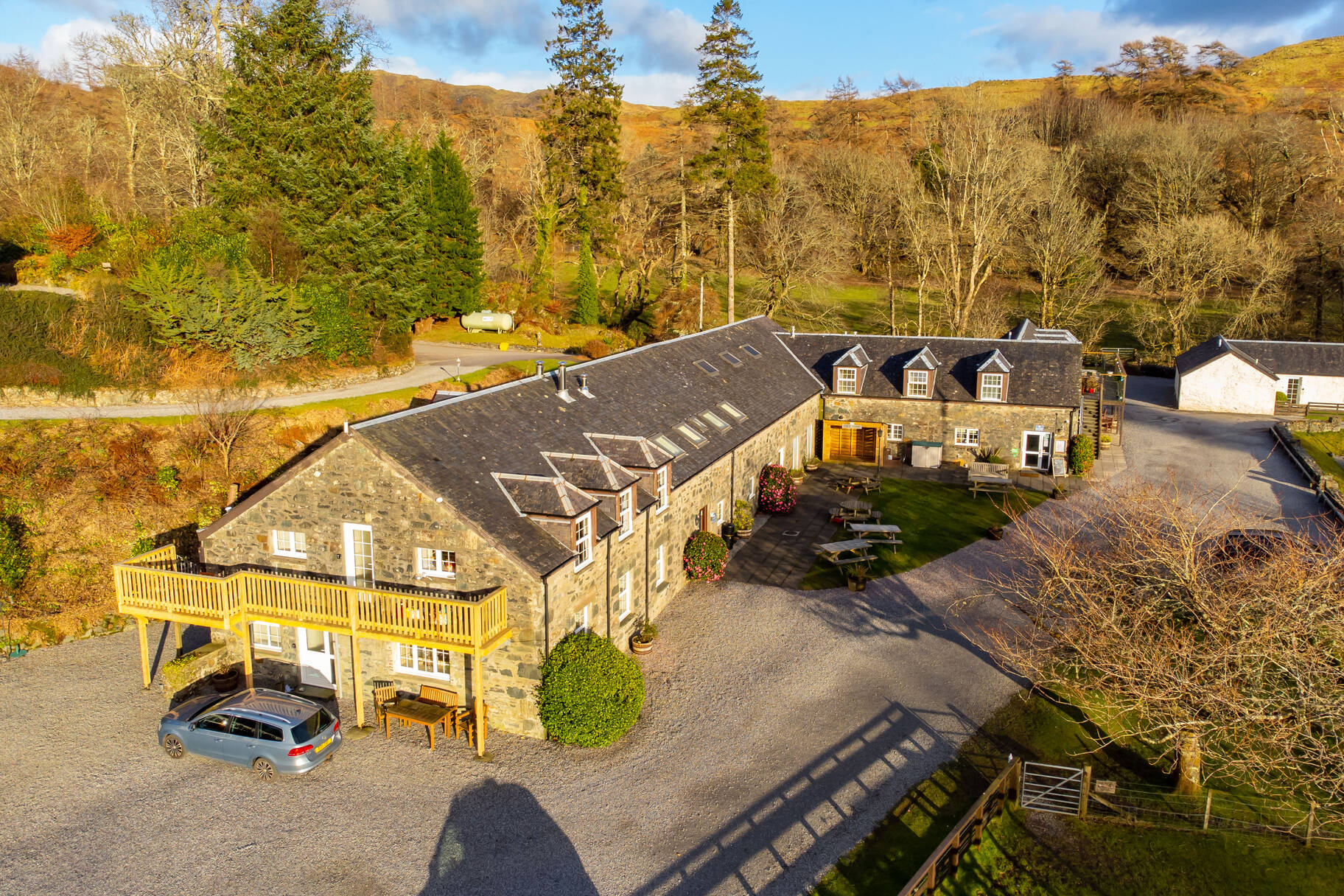Outside, the sheltered area beneath the balcony of Upper Cooperage offers outdoor seating, a bird-feeding area, and a peaceful spot to relax. Parking is conveniently located to the left side of the gable end, beneath a grassy bank, providing easy access throughout your stay. With its blend of history, comfort, and scenic surroundings, Lower Cooperage is an idyllic escape for your next holiday.