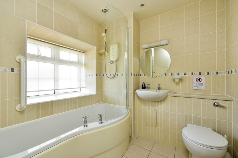 with bath, over-bath shower, WC & wash-hand basin
