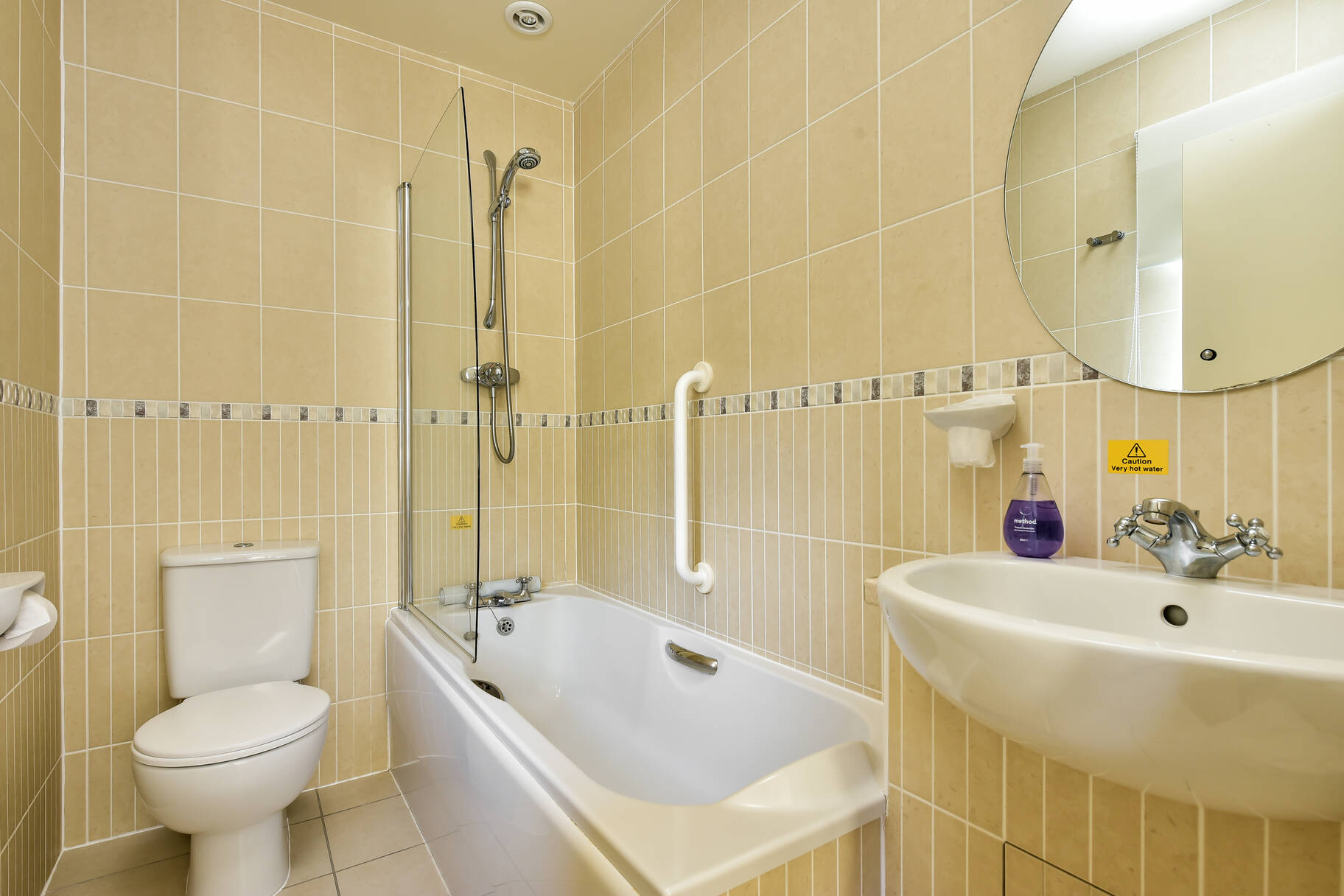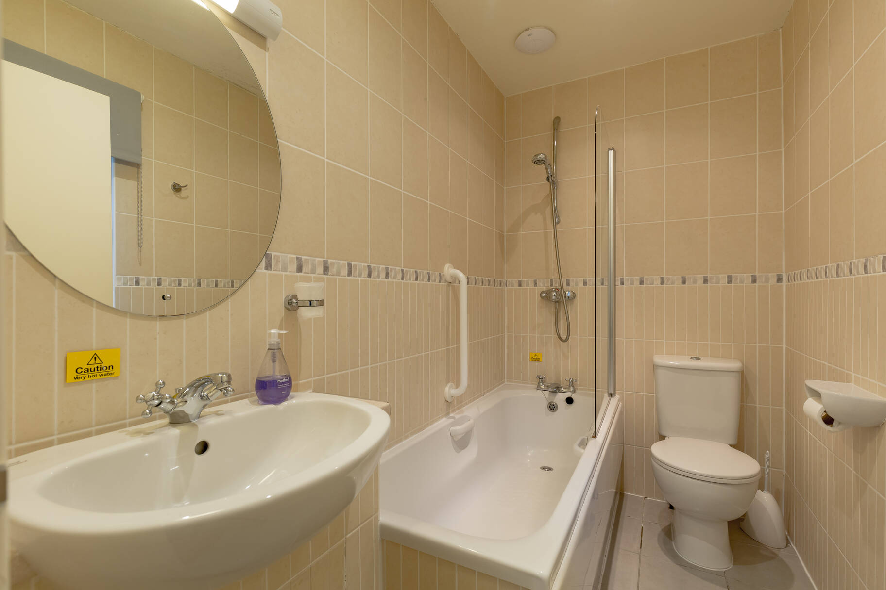 with bath, over-bath shower, WC & wash-hand basin