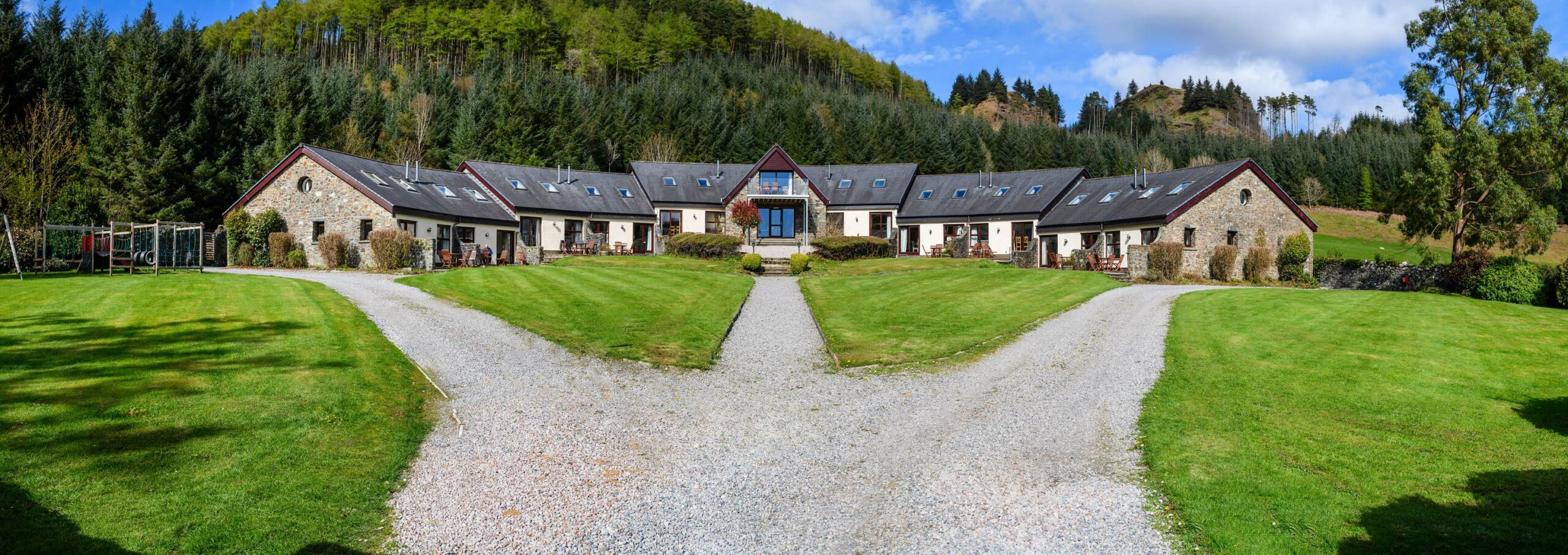 The Walled Garden Mews Cottages offer peaceful two-bedroom retreats within the stunning Melfort Village, featuring open-plan living, well-equipped kitchens, and serene garden views – perfect for a relaxing getaway.